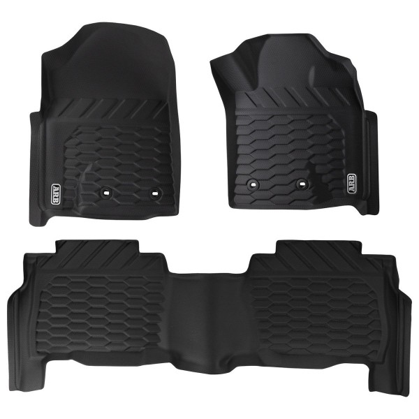 Килимки для салону автомобіля ARB спеціально розроблені для уловлювання та утримання сміття та бруду, є водонепроникним рішенням, що забезпечує надійне розміщення ніг і щільне прилягання. Килимки надійно закривають всі області вашого оригінального простору для ніг і навіть дозволяють використовувати оригінальні кріпильні кліпси автомобіля, де це можливо. Двоступінчаста система захисту утримує бруд, сміття та воду. Спеціальні водозбірні ділянки килимка призначені для вловлювання будь-яких сторонніх матеріалів і забезпечують повний захист підлоги вашого автомобіля. На другому ступені передбачені дренажні канали, які направляють вологу в додаткову зону водозбору, тим самим запобігаючи ковзанню під час руху.