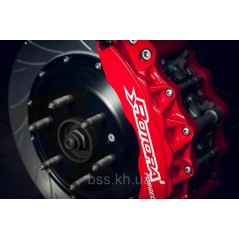 - Rotora 1- или 2-составные диски с направленной вентиляцией (термообработанные) для увеличения воздушного потока / охлаждения при резком торможении. Диски увеличенного размера с прорезями или отверстиями размером до 16 дюймов (405 x 36 мм) для обеспечения увеличения теплоемкости, освобождая поверхность диска и тормозной колодки от лишней пыли.