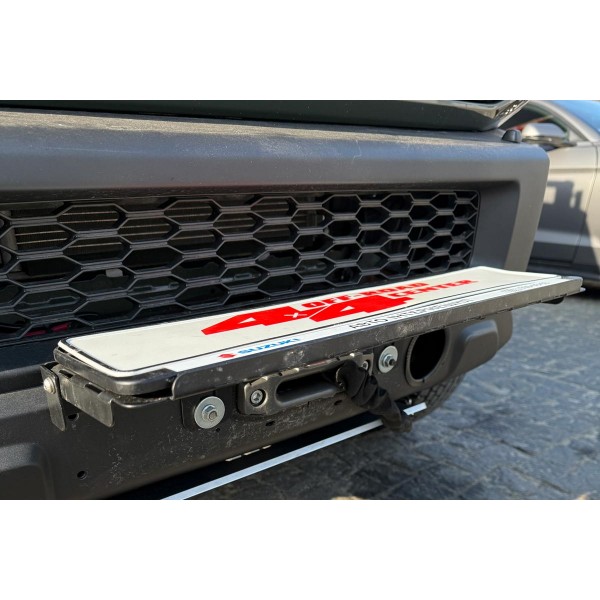 Площадка 25-0153 призначена для встановлення лебідки з тяговим зусиллям до 7000 lb (3175 кг) у штатний передній бампер автомобіля Suzuki Jimny 2018+ з прихованим (нижнім) розміщенням лебідки. Конструкція забезпечує надійне кріплення без зварювальних робіт та зберігає доступ повітря до радіатора через штатний отвір у бампері.
