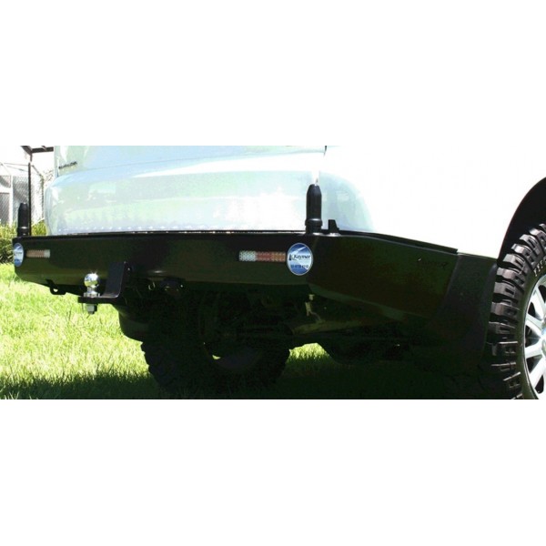 Австралийская компания Kaymar, является мировым лидером в области дизайна и изготовления, усиленных металлических бамперов. Каждый бампер разрабатывается под ту или иную марку автомобиля, и заменяет полностью штатный. Бампер комплектуется задними стопами, полноценным фаркопным местом, и двумя штоками, на которые можно навешивать, как крепежи запаски либо одинарный, либо двойной, либо крепежи канистры. Также предусмотрены места под домкрат Hi-lift, и телескопическую фару заднего вида. Материал — 4мм высококачественная сталь. Конструкция специально разработана, чтобы выдерживать максимальные перегрузки, возникающие, как при эксплуатации в экстремальных условиях, так и в непредвиденной ситуации на дороге.